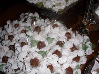 Esse casamento foi de princesa. Toda a decoração seguia nos tons claros. A mesa montada por nós foi toda em branco. Temos muitos modelos de forminhas, mas a noiva escolheu quatro, as rosas recortadas, rosas invertidas, vitória régia e rosa copo. Foi tudo montado de forma especial. Ficou realmente um encanto.